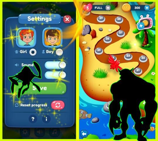 Mega, war or transform nothing of those things in that game ,In this puzzle game you can choose Ben or Susan to start play with, The game is so simple that you can eliminate two or more adjacent squares with just one click.But it's not so easy to go through the customs, you know, before you do that, you want to get rid of the block, and then you can get rid of it, and you can go through three steps and see how much you can pass.