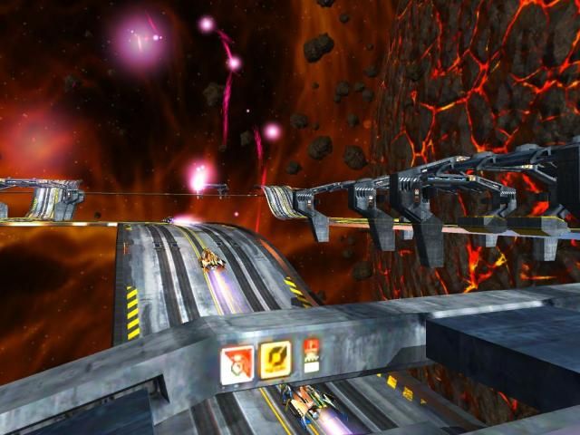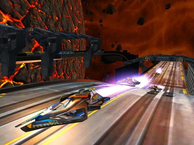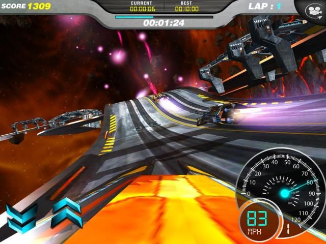 In the year 3011, the mega corporation Alpha Technologies hosts a racing event for the entire galaxy to watch! Drive awesome high tech hover vehicles to their limit and blast your way down the futuristic track!