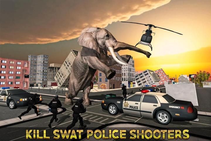 Wild elephant has been escaped from city zoo and creating maximum chaos & rampage in fantasy city. Control giant sized angry monster elephant and destroy everything comes on your way in elephant rampage game. Attack on people and kill SWAT police shooters for survival in town in this elephant simulator game. This elephant hunting in city is all about destruction games and unlimited havoc in Angry Elephant City Attack simulator. Join the series of city destroyer games and play rampage games fusions with city destruction games. As a wild African elephant smash and attack with your nimble trunk and forceful hooves. Today the predators of wilderness like lion, wolf, cheetah, hyenas cannot fight and show the anger like this mammoth elephant rampage. Your Bigfoot town smasher, ultimate elephant is ready to take down the city. Play this attack and rampage game which is best in the category of destroying games also destruction games.