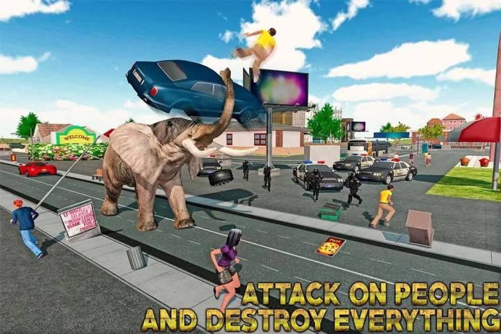 In this free to play animal simulator games, you play as a wild angry animal which is on the loose. Roam around and attack on human and military force equipped with modern weapons and sniper guns, smash cars, army tanks and knock them down. As a bigfoot elephant monster, create frenzy in your path with your wild elephant simulation. Show no fear and no mercy in elephant games and wreck the whole 3d fantasy town with your heavy structure with angry animal 3d simulator! Release your inner wild jungle beast out and create maximum destruction in this massive 3d city! Grand city police and swat army is ready to shoot with sniper guns and rifles show your fury. Destroy all obstacles in shape of tanks, army cars, army trucks, houses and hit people with your special attacking powers.