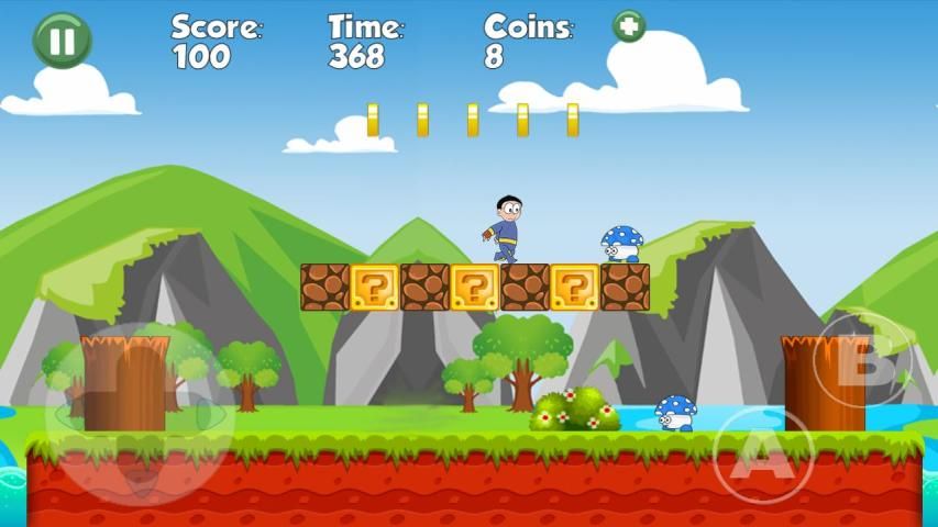 Nobita भागो और बाधाओं से अधिक कूद और गड्ढों से बचने के लिए इकट्ठा अंक, सिक्के