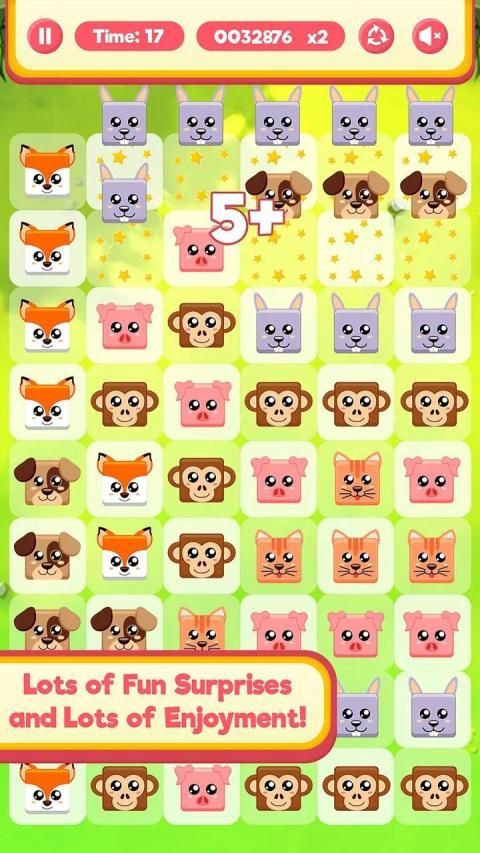 Welcome to this Animal Adventure, one of the best free Animal match 3 games you'll ever play! Download it right now to step into this land full of cute Animals. The Dogs, Cats, Monkeys, Cows, Pigs, Foxes, Sheeps and Rabbit are waiting for you! Start this journey of fun linking 3 or more cute animals in every direction to pop them.