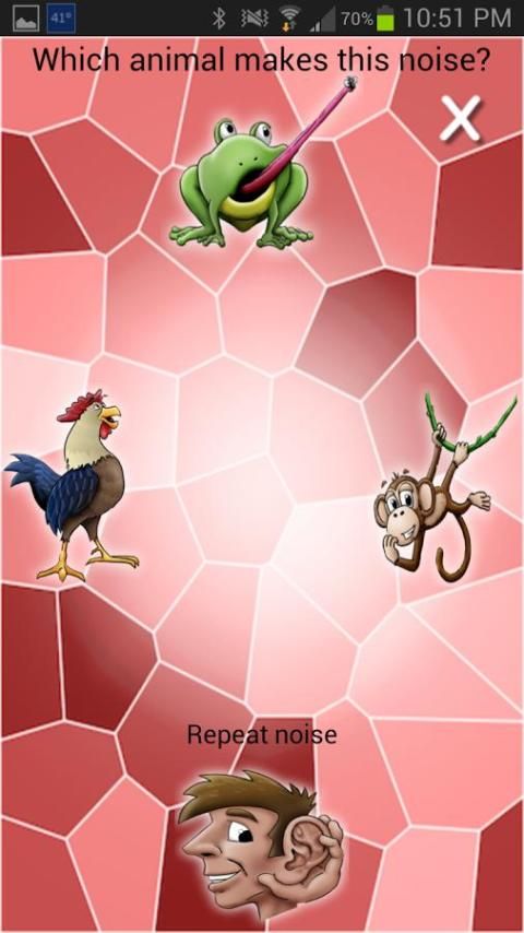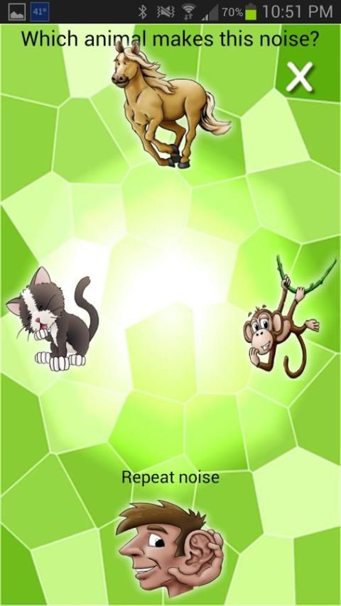 # 2: अनुप्रयोग एक जानवर शोर निभाता है और बच्चों को चुनें जो जानवर है कि शोर करता है की सुविधा देता है।