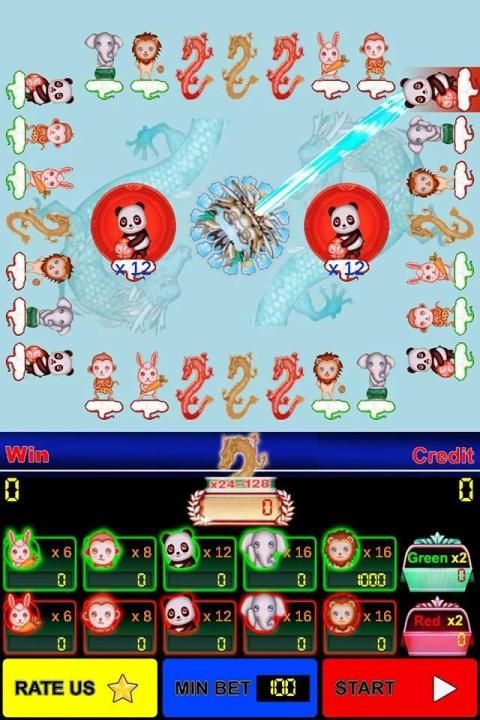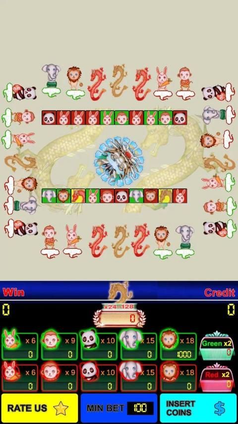 - Players may choose to wager on eleven outcomes: Dragon, Green (Rabbit, MonKey, Panda, Elephant, Lion), Red (Rabbit, MonKey, Panda, Elephant, Lion) then touch Play button. Players also betting with red, green color only.