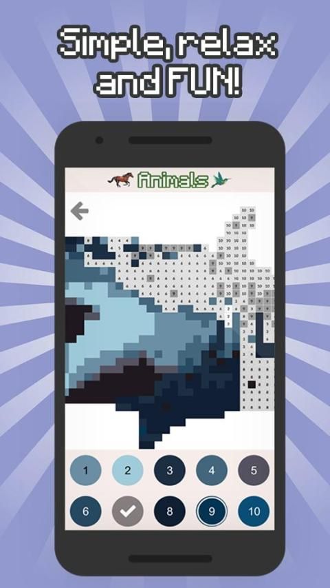 Color animals by number in pixel art in this fantastic color by number for adults free game and children.