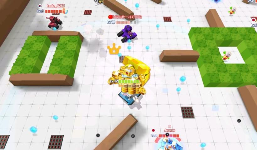 - नक्शे पर नीले धब्बे उठाकर और स्थानीय टैंकों को हराकर आपको अपग्रेड का अनुभव मिलेगा।