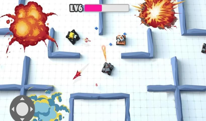 - The rocker in the lower left corner controls the movement of the tank, and the attack key in the lower right corner fires shells.