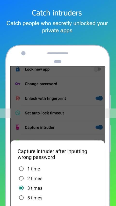 ★ Capture intruder: snap a photo of who try to unlock your apps