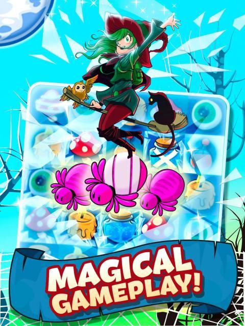 Apprentice Witch puzzle match-3 Halloween puzzle game brew magic potions & charms in this adventure of sorcery and witchcraft with amazing graphic that come with a Halloween twist