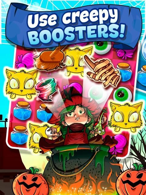 Explore the fun and addictive match 3 game in a spellbinding adventure through the puzzle world. Get the pumpkin or skulls in this witchcraft and enjoy the wonderful graphics. It’s highly addictive! The amazing graphics take your experience and magical adventure to the next level! Complete all spellbinding challenges in halloween witch puzzle world, create amazing addictive combos when combine special magic items. Activate special boosters to create spectacular combos what creates powerful effects and gains a higher score.