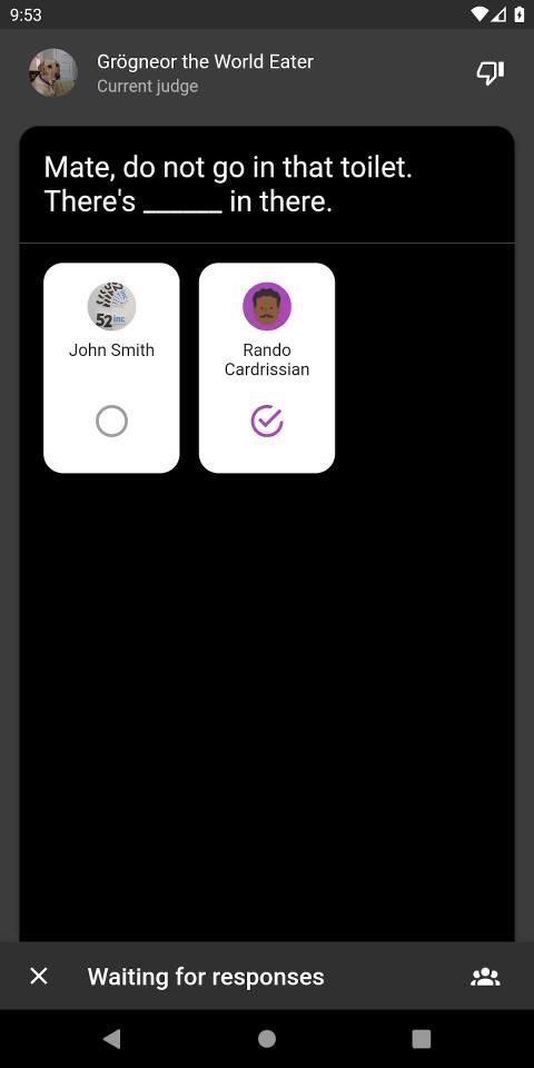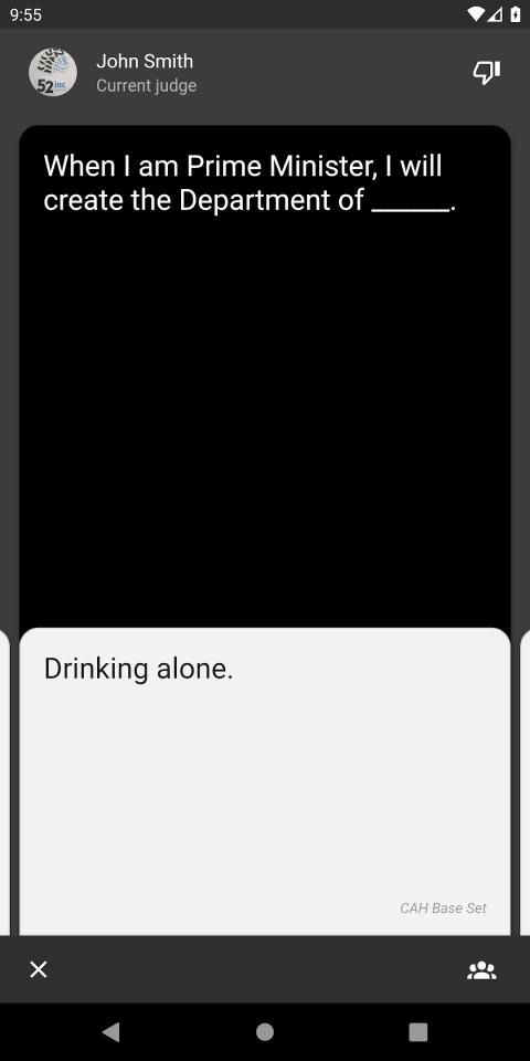 Play one of your favorite card games on your mobile phone. It has prompt cards, response cards, judging your friends, and all from the safety of your home.