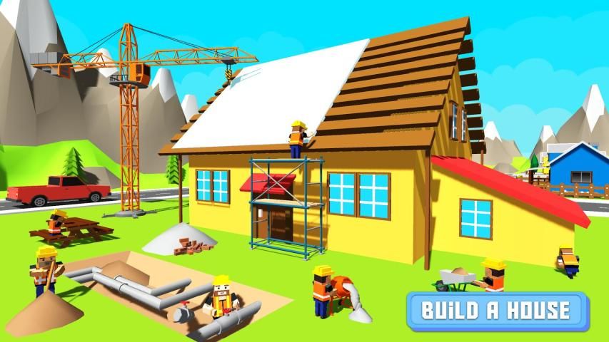 Being the player of this mega construction you have to redesign house for society with different objects. The machinery which you can use in this crafting fun is excavator concrete mixer, road roller, tower crane and loader. You need to be very careful while driving and using these heavy vehicles. These vehicles have easy and smooth controls for your ease in this house construction. Your colony is very old and you want to renovate it with construction materials. The first level of this fork lifter crane is to break the old houses. You have to take excavator crane to construction site by following arrows to complete the construction building tasks for the old buildings demolition. Now you need to dig the area in this real digging with the help of excavator. In this level of square craft you need to throw concrete in the hole with the help of concrete mixer. You need the new material in this creative architect. You can use trailer and crane for this purpose in this house builder. The way is defined with the help of arrows use those arrows and reach your destination in explore crafting. Drive the road roller on the roads in crafting and building. The place is not even of the roads use this machine and levels the gravel on the roads in building 3d blocks. In this level of mastercraft you need to place bricks of walls. The bricks are already with the walls but this time you are going to use colorful bricks in buil simulator craft. Now you are going to place the pipes in block building. This time is for the paint of the house in architect. In the final level of construction building tasks you need to place the roof of house by using tower crane. The last level of crafting fun is to clean construction area site by using the bulldozer. You have to pick the material with bulldozer and throw out it to outside of construction site in mega construction.