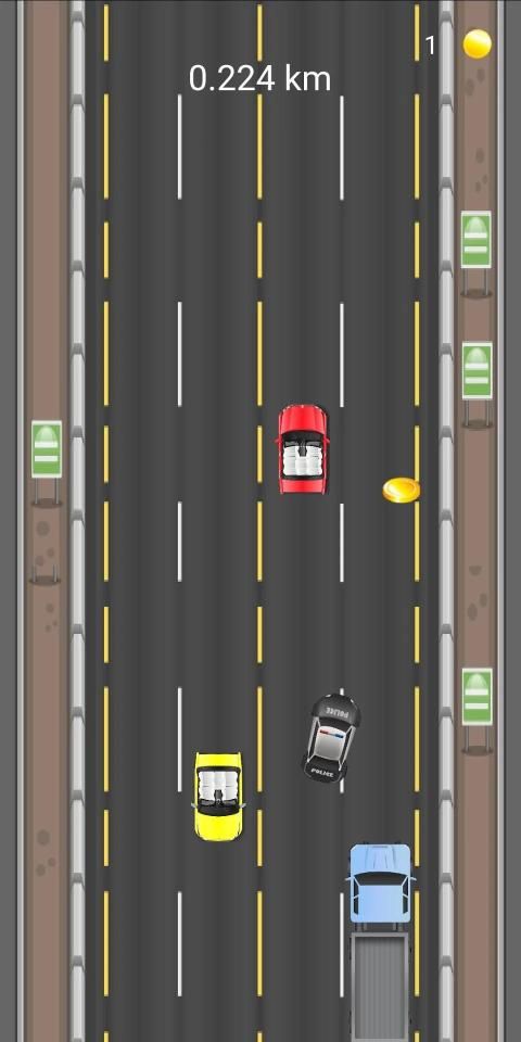 Drive your car on the highway and slalom between cars to avoid collision.