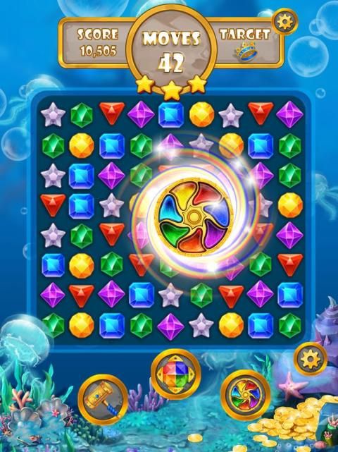 Enter the diamond match 3 Atlantis quest world , smash the diamonds of Atlantis, collect special surprises, gently move the gems