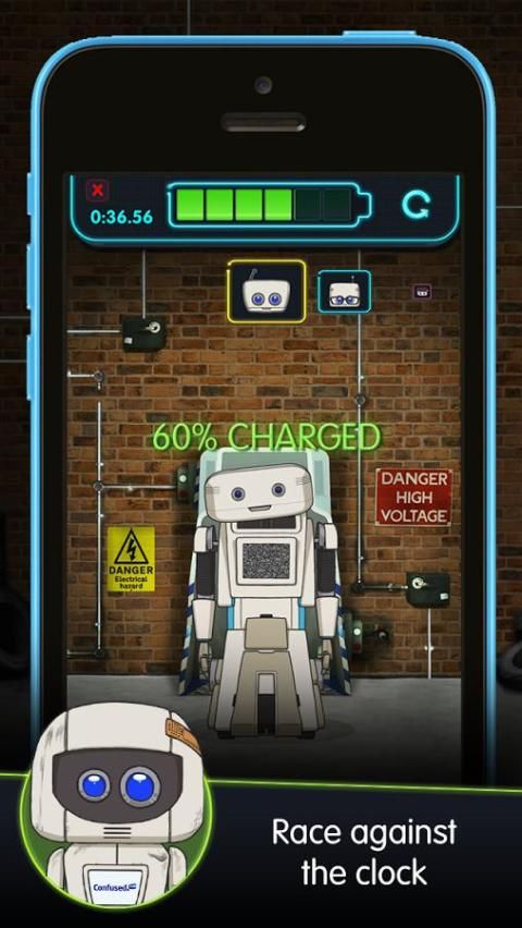 Confused.com ब्रायन रोबोट एक फ्लैट बैटरी है और उसकी सहायक बॉट, Herberts, उसे ठीक करने के लिए चाहते हैं। क्या आप उन्हें मदद कर सकते हैं?