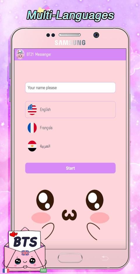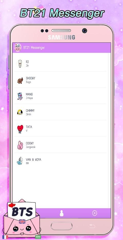 BT21 मैसेंजर के साथ बहु भाषा BT21 के अपने पसंदीदा सदस्यों का चयन करें! और रोमांस की कहानी या कुछ नाटक rom के साथ मस्ती करना शुरू करें