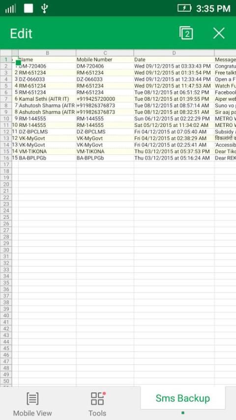 फोन में सभी एसएमएस का एक्सेल शीट बनाएँ।
