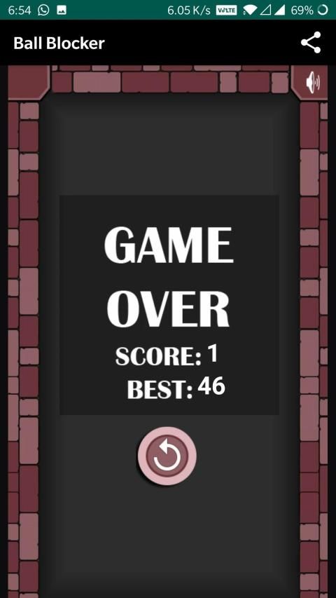 In the game one of the walls only activate when you tap on the screen. So tap on the screen at the right time and block the ball from going down. Try to beat your high score. Ultimate game to pass your free time without involving much brain! :P