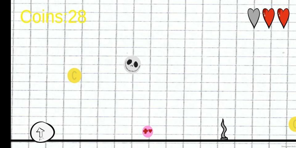 Story of the game: It is math class. Teacher is talking about geometry and shapes. One student was bored, he started drawing in his notebook. When the teacher spoke about circles, the student had an idea. He thought about a game. He took a paper from his notebook and started drawing platforms and circles. Now you are the player of his game.