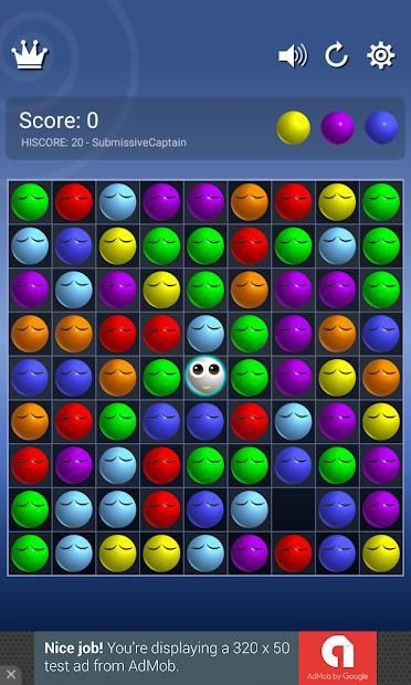 The game's objective is to remove balls by forming lines (horizontal, vertical or diagonal) of at least five balls of the same color. Balls on a line are removed and points are given.