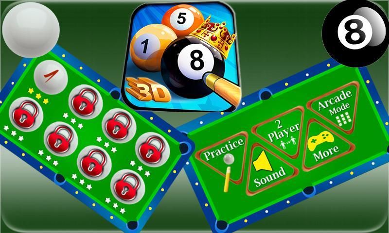 - 8 गेंदों, 9 गेंदों और अन्य बिलियर्ड्स से चुनने के लिए मोड।