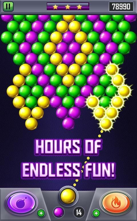 • मैच कम से कम 3 एक ही रंग के बुलबुले एक पंक्ति विस्फोट बना सकते हैं और समूह पॉप।
