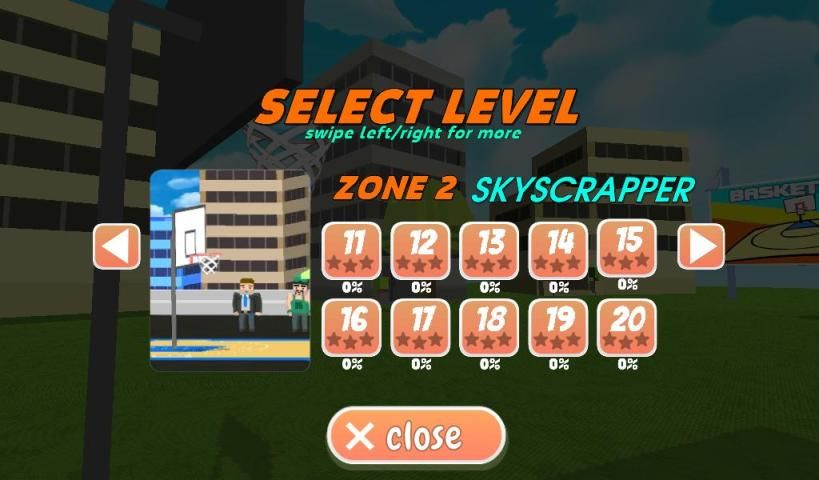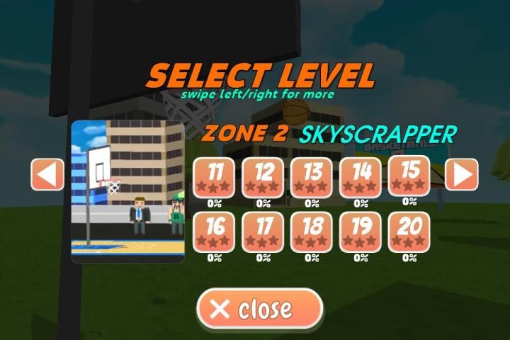 Some levels have the ball positioned close to the basket. Try to simulate slam dunks or make clean shots here. Touch higher up the screen and drag downward to increase the height of the trajectory, then