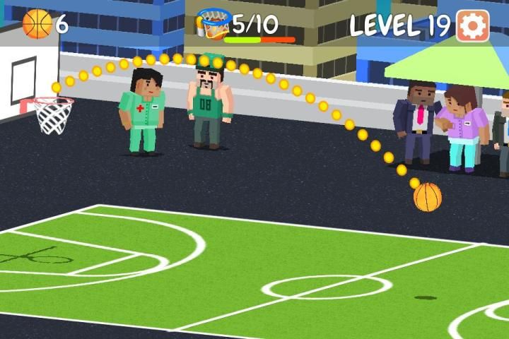 । कुछ स्तरों में गेंद को टोकरी के करीब रखा जाता है। स्लैम डॉक्स को अनुकरण करने या यहां साफ शॉट्स बनाने की कोशिश करें। स्क्रीन को ऊपर टच करें और प्रक्षेपवक्र की ऊंचाई बढ़ाने के लिए नीचे की ओर खींचें