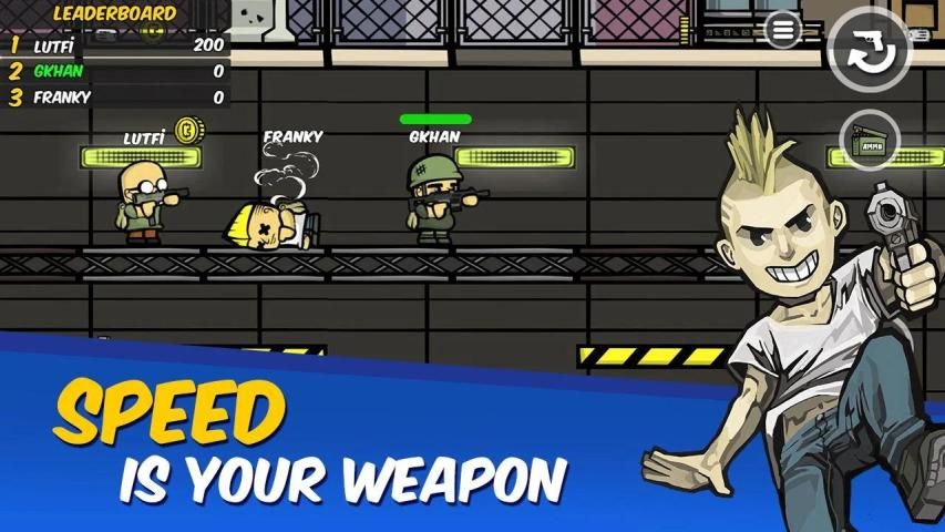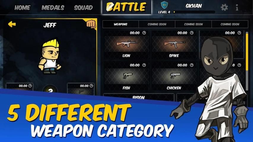 Battle Medal is a pvp online multiplayer 2D shooter for mobile platforms. In this online shooting game, you can select different kind of characters, All characters have their unique ability for the fight agains other characters. Tons of guns, characters and actions are waiting for you. The result of the struggle depends only on your skills and weapon mastery! Win the battles and collect the medals. Fast and full of fun game is wating for you.