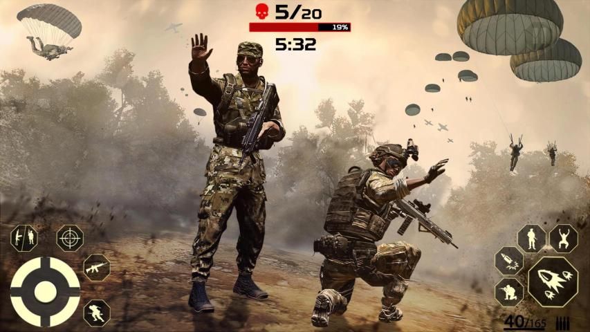 गन शूटिंग गेम युद्ध के मैदान के जीवित रहने वाले मिशनों से भरा हुआ है।
