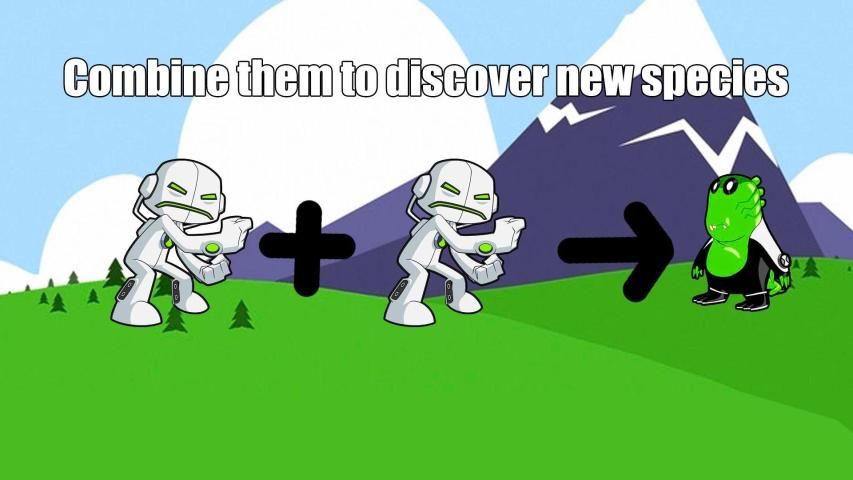 मर्ज एलियंस और श्रृंखला से उपलब्ध सभी प्रजातियों की खोज करने के लिए उन्हें विकसित करना।