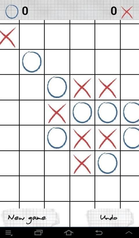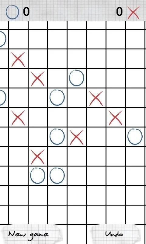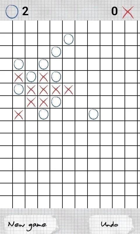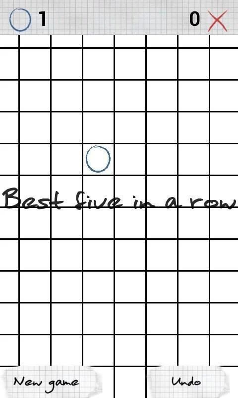 एक पंक्ति में सबसे अच्छा पांच दो खिलाड़ियों के लिए एक पेंसिल कागज खेल है। एक्स और ओ ले रिक्त स्थान अंकन बदल जाता है। खिलाड़ी है जो एक, क्षैतिज ऊर्ध्वाधर या विकर्ण पंक्ति में पांच संबंधित के निशान रखने में सफल होता है एक पंक्ति में सबसे अच्छा पांच जीतता है। अपने मित्रों को चतुरता में मात देना! सर्वश्रेष्ठ बनो!