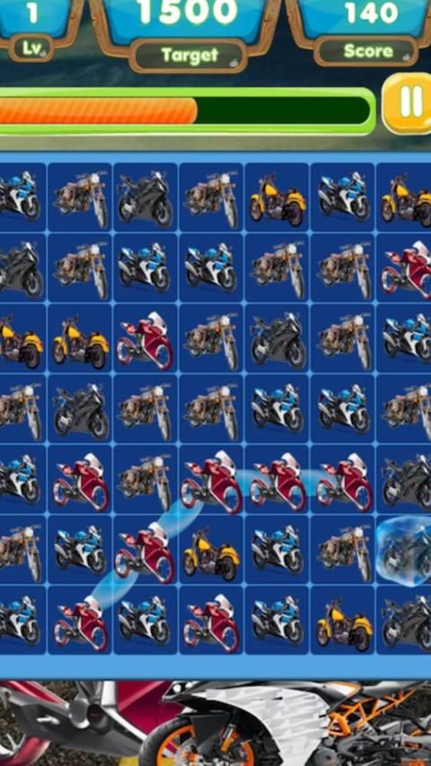स्पष्ट तीन या अधिक एक ही बाइक स्कोर अंक के लिए, अधिक combos बनाने के लिए खेल रंगमंच की सामग्री का उपयोग करने की कोशिश! अद्भुत और स्वादिष्ट बाइक लिंक खेलते हैं!