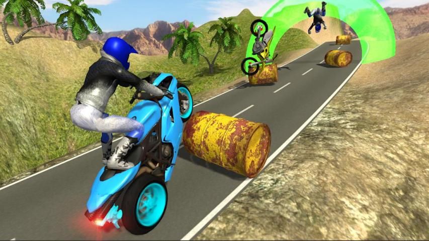 Bike rider stunts is the open world moto racing where you can perform awesome stunts, smash into interactive environment objects and explore the amazing offroad island.