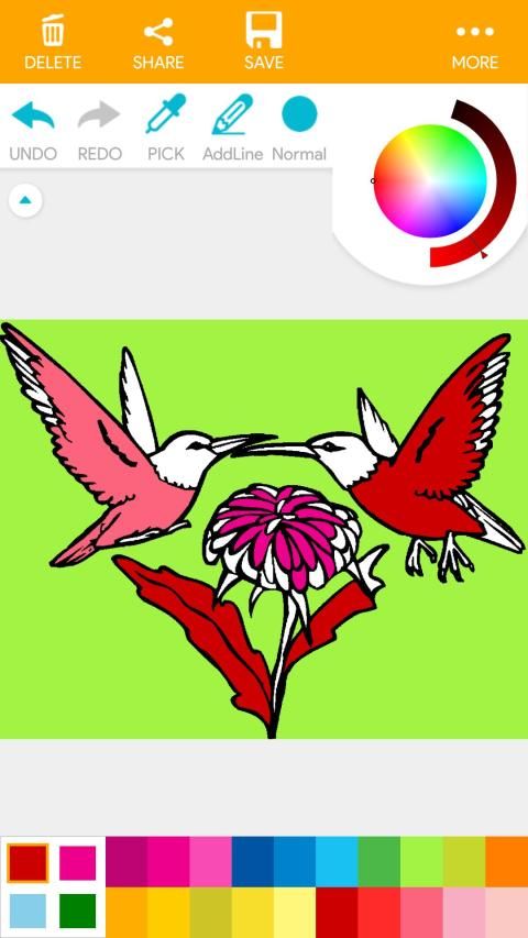 इस एप्लिकेशन में आप उपलब्ध पक्षी चित्रों के अनुसार पक्षियों को रंग देंगे।