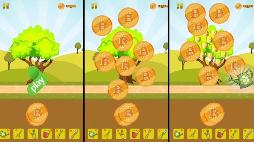 बस स्क्रीन पर टैप करें अपने Bitcoin पेड़ हो जाना bitcoins कमाते हैं और अपने Bitcoin अरबपति साम्राज्य बनाने के लिए उन्नयन अनलॉक करने के लिए।