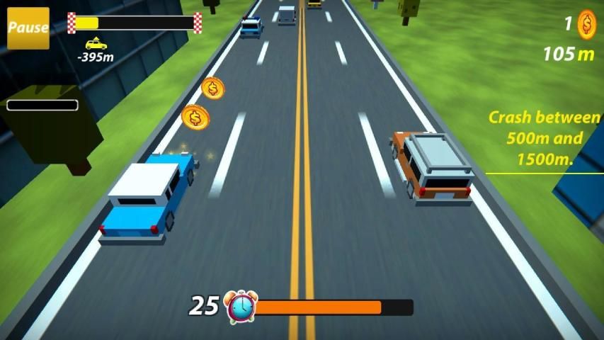 Drive on the block to world blocky cars, avoid oncoming traffic, collect coins and fuel, to buy the best cars and unlock new tracks!