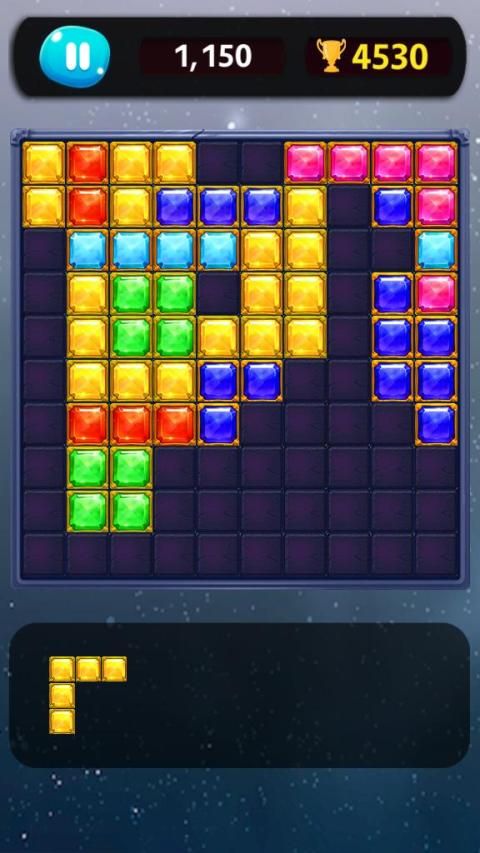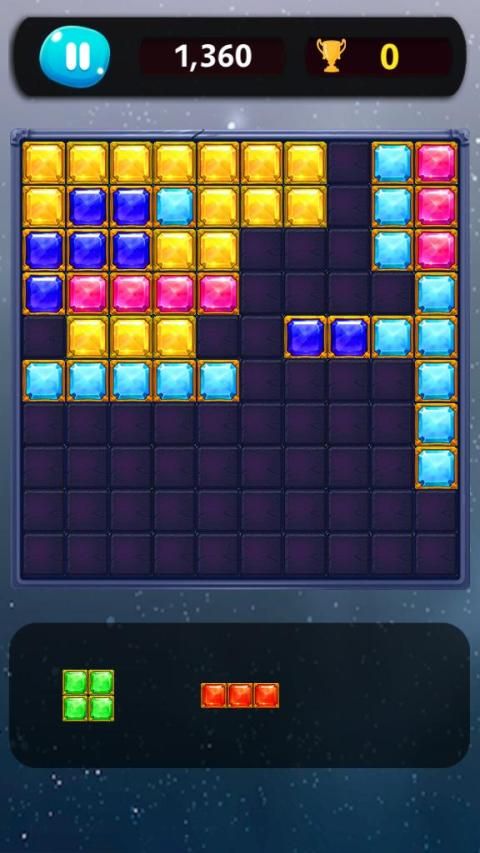 In this Drag & Drop style pzzle game. You choose the blocks put on to make vertical or horizontal lines of jewel blocks and make them blast and move on to make more lines. Try to keep the grid clear to get highest score, and always make sure there is enough space for the next block.