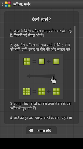 - बोर्ड को स्वाइप करने के बाद हर बार, पहले या दूसरे लेवल के दो नये ब्लॉक्स दिखाई देंगे।