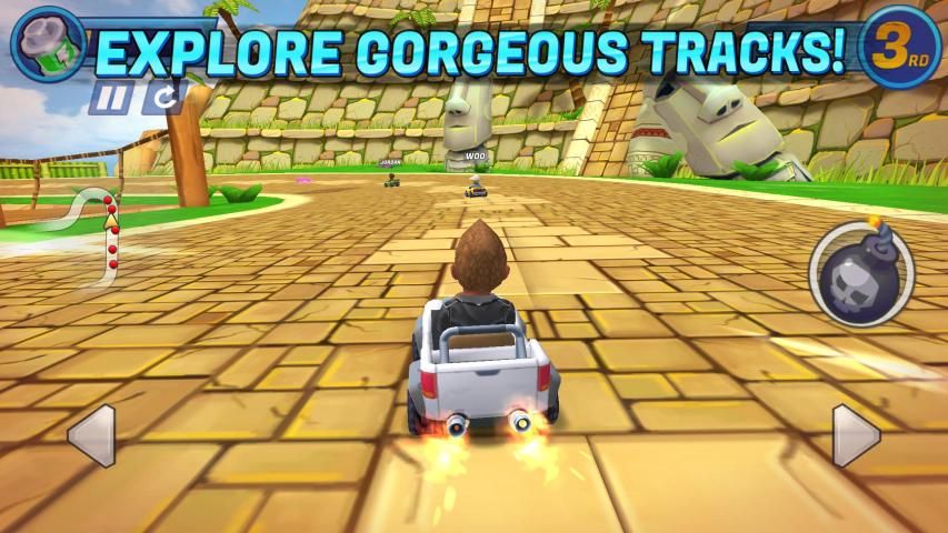 Explore 8 thrilling race tracks ranging from metropolitan sewers to pirate towns. Alternative pathways and hidden shortcuts offer an advantage to those smart enough to find them while swinging axes, lava pools and speeding mine karts can ruin the race for a careless driver.