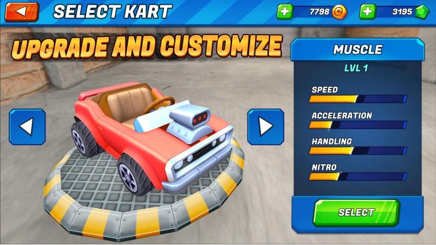 Master the art of drifting to become a pro; Charge up your nitro tanks by maintaining a long drift and activate a nitro boost that blasts you ahead of the competition. A skilled driver can use precise timing to deploy more powerful nitro boosts.