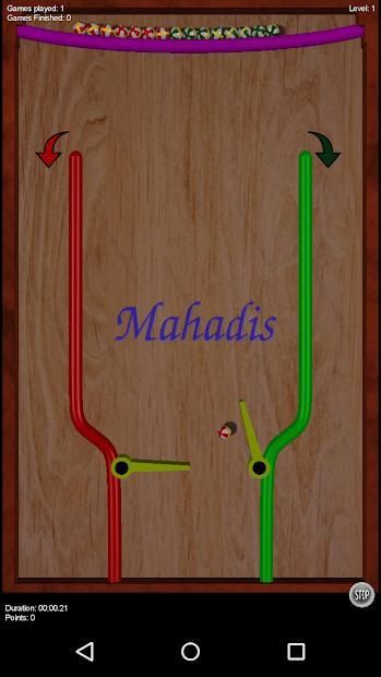 2 फ्लिपर्स (पीला रंग) लाल रंग, हरे रंग की गेंदों को रंगीन तीर से दर्शाए गए अपने संबंधित क्षेत्र में फेंक देते हैं