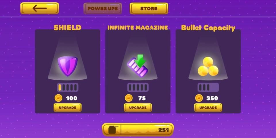 • Bonus Power ups (Instantly kill all enemies, shield, etc..)