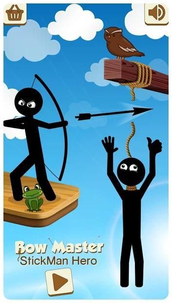 Shoot arrows to save your stickman buddies. They are in trouble and you need to cut the rope from which they are hanging and complete challenges to get stars. Use the stars to change your character or get new bows.