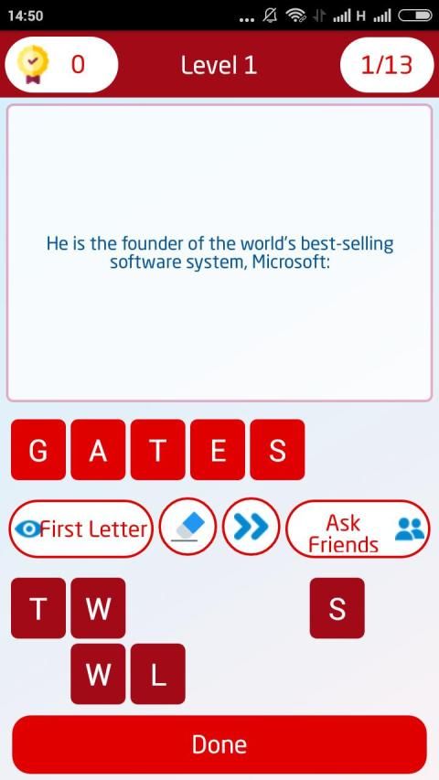 इस ब्रेन टीज़र क्विज़ गेम्स में प्रसिद्ध लोगों, फुटबॉल खिलाड़ियों के नाम, जानवरों, प्रसिद्ध भोजन, प्रसिद्ध स्थान, झंडे आदि के बारे में सैकड़ों क्विज़ प्रश्न होते हैं।