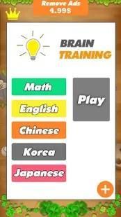Brain Training Games is the best of Brain Games. it good for your brain on it. Brain Training Games will help you think faster and don't faster foget in long time when you play brain games. Brain Training Games is super simple brain games but it is very addicting games. Brain training games will make you thinking faster and reflect your mind quickly with the math and vocabulary words in English, Korean, Chinese and Japanese. Brain Games are seems very simple but I believe you will love it. this is focused games so you have to focus games and think fast , use your knowledge to conquer this brain games.
