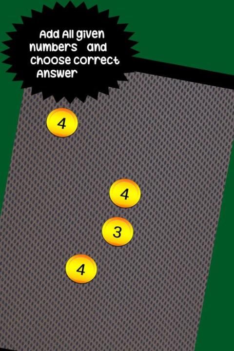 खेल का उद्देश्य निश्चित समय सीमा के भीतर संख्या जोड़ने के लिए है. इस खेल के साथ गणित की लत का अभ्यास यह आसान और मजेदार बना देता है.