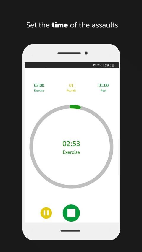 स्टॉपवॉच का उपयोग करके लड़ने, तकनीकों के हमलों को प्रशिक्षित करें।