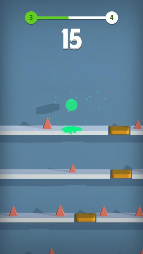 The unique, one tap (and hold) gameplay makes for a simple yet fun experience. The goal is to get your jumping ball character to the bottom of the level, by breaking through orange gates. Players can try their best to move quickly and earn the rocket powerup, which will boost through the platforms automatically. Players lose when the cube doesn’t jump high enough before trying to break through a gate, or when the character hits a white platform.