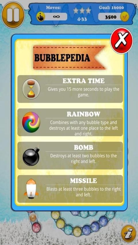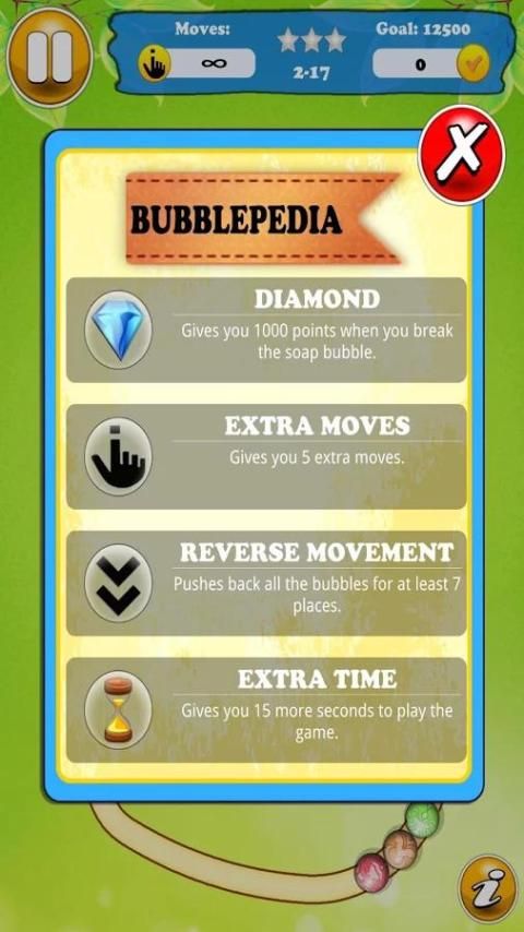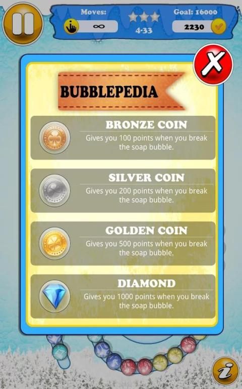 उद्देश्य और बुलबुले के तार विस्फोट करने के लिए गोली मार। एक ही रंग के तीन या अधिक बुलबुले के फार्म तार उन्हें विस्फोट करने के लिए। उत्प्रेरक श्रृंखला विस्फोटों बड़ा और बड़ा स्कोर पाने के लिए। आप अग्रिम के रूप में आप विशेष बुलबुले आप अपने स्कोर को आगे भी बढ़ावा देने में मदद मिलेगी का सामना करेंगे।